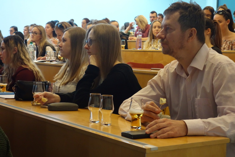 Obchodný riaditeľ ERBu je zároveň prvým pivným someliérom na Slovensku a nedávno opäť prijal pozvanie prednášať študentom UKF v Nitre. Jeho priblíženie problematiky varného procesu, histórie piva a párovania jedla s pivom študentov zaujalo, a tak veríme, že ERB opäť prispel k vnímaniu piva ako ušľachtilého nápoja. Mimochodom, tie zapchaté nosy na jednej z fotiek si nevysvetľujte ako ťažký vzduch v prednáškovej sále, ale ako názornú ukážku toho, že bez nosa by ste žiadnu chuť necítili v plnej kráse.